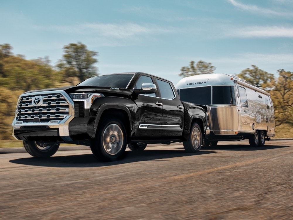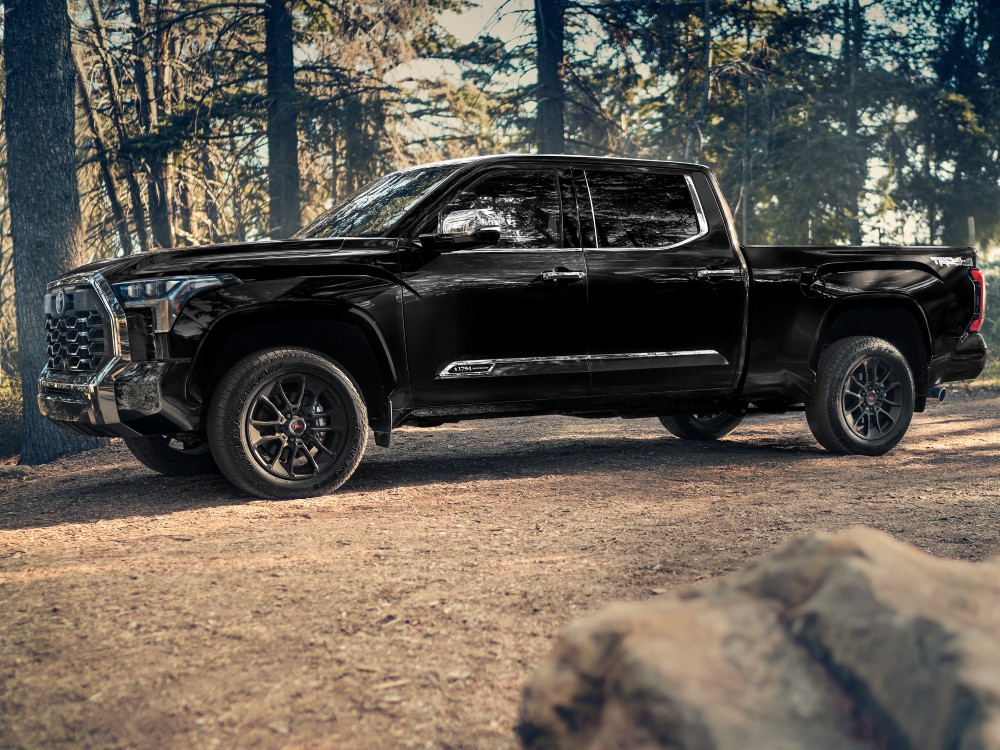 The Tundra's muscular exterior exudes confidence. With its bold grille, sculpted hood, and robust body lines, this full-size pickup commands attention on the road and trail. Multiple cab and bed configurations provide the versatility to tackle any job, from the Double Cab with available 6.5- or 8.1-foot bed options to the spacious CrewMax with 5.5- or 6.5-foot bed options.